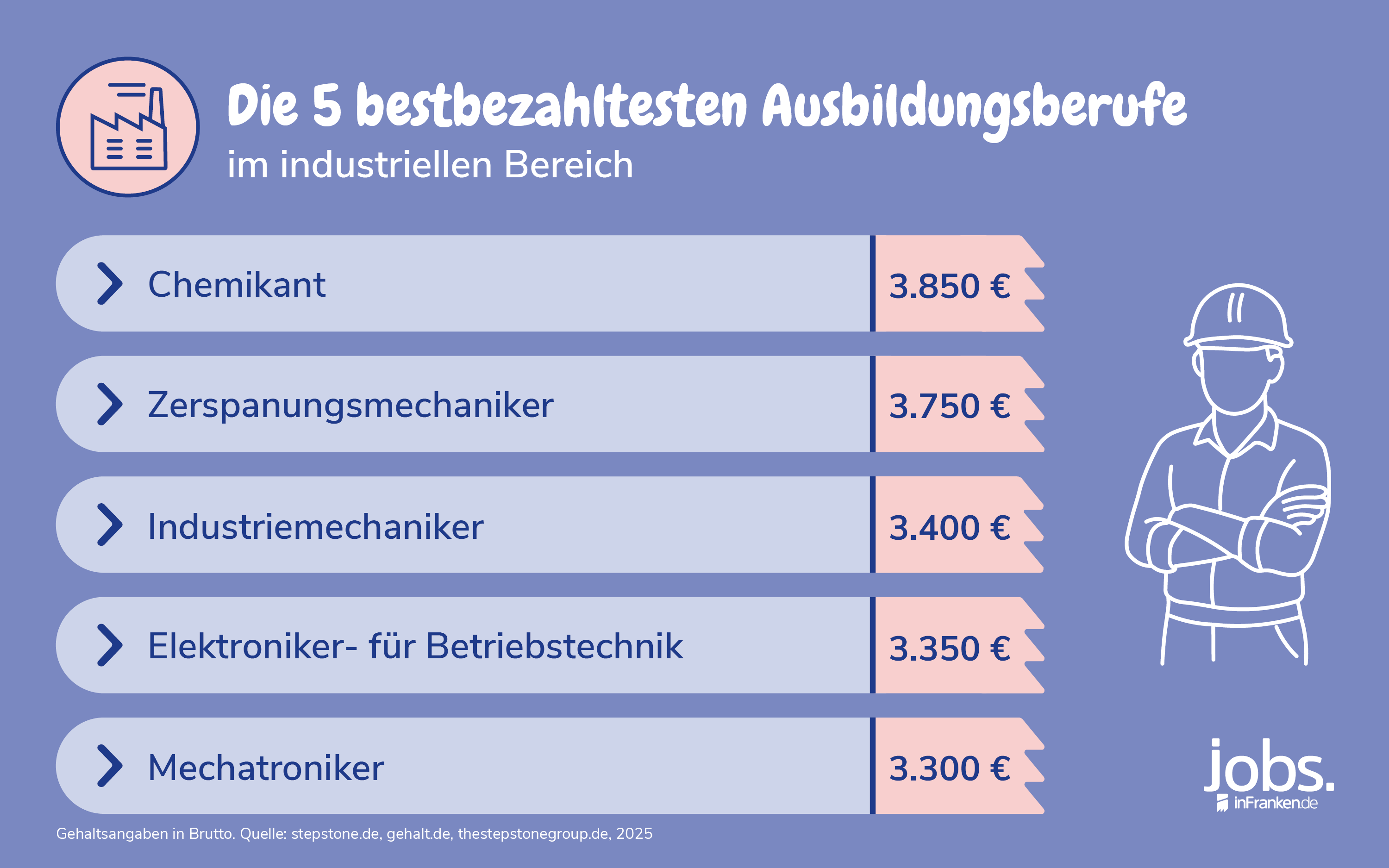 - Chemikant: Durchschnittlich etwa 3.850 Euro brutto im Monat
