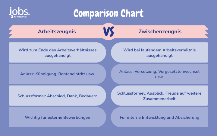 Im Arbeitszeugnis bekommst du eine abschließende Bewertung deiner gesamten Tätigkeit und deines Verhaltens, die bei Beendigung des Arbeitsverhältnisses ausgestellt wird, inklusive einer Dankes- und Abschiedsformel. Das Zwischenzeugnis hingegen erhältst du während deiner Anstellung, zum Beispiel bei einem Vorgesetztenwechsel oder auf eigenen Wunsch.